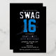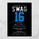 This blue varsity-style Swag 16 birthday invitation is perfect for anyone looking to add a touch of fun and youthful energy to their celebration. The design features bold, eye-catching colours and a classic varsity font that will make any recipient feel like they're part of the team. The invitation includes all the necessary details, including the date, time, location, and RSVP information. This invite is sure to set the tone for a memorable and exciting celebration of this milestone birthday. If you are not celebrating a 16th birthday you can alter the age on the invite as preferred.
