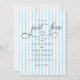 This wedding invitation features a clean blue and white vertical stripe background that creates a fresh and timeless look. The soft blue stripes add a subtle coastal charm while keeping the design modern and refined. The layout is simple and well-balanced, making it suitable for both formal and semi-formal weddings.