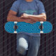 Blue Vertigo Nexus Custom Signature Pro Park Board by NEVERMIND CUSTOM PRO BOARDS. Wheels and trucks included.