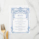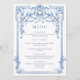 Blue Victorian Ornate Grace Floral Wedding Dinner Menu