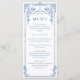 Blue Victorian Ornate Grace Floral Wedding Dinner Menu