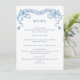 Blue Victorian Ornate Grace Floral Wedding Dinner Menu