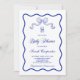 Blue Wavy frame Baby Shower Boy invitation, blue bow invite