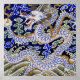blue vintage Chinese tattoo Embroidery dragon Poster