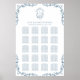 Dusty Blue Monogram Floral Vintage Crest Wedding 20 Table Seating Charts Poster. All the texts are pre-arranged for you to personalise easily and quickly with your own details.