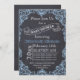 Vintage scroll leaf blue frame and chalkboard baby boy shower invitation featuring a sky blue vintage frame of scroll leaves on a charcoal grey chalkboard or blackboard background and your text in a scroll banner. A modern and contemporary approach to a vintage theme. This retro template design is fully customisable and can be personalised.