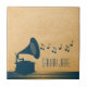 Quirky and unique Vintage Gramophone Tile in dark blue featuring a silhouette of an old-fashioned gramophone and a cascade of musical notes on a digital art rendered paper background. This chic decorative tile will add vintage flair to any decor and is perfect for any music lover. Easy to customise, simply personalise with the text of your choosing. Click on the "Customise It" button to find additional personalisation options.