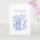 A new home greeting card with a blue line drawn illustration of a house surrounded by trailing flowers.