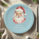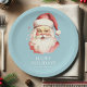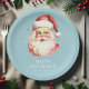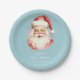 Blue Vintage Retro Santa Claus Christmas Paper Plate
