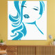 Lovely, retro girly theme in blue cyan and white colours. A beautiful, sensual woman face and neck. Fun, retro drawing.