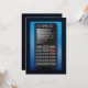 Celebrate your teenager or pre-teen boy's birthday party with this blue and black sleek, texting, text message cellular phone with numerical keypad invitation. Great for any age, especially 12, 13, 14 and 15, when teens really want their own mobile devices. Design features faux sleek phone, black screen and white text message and smiley face icon. Customise with your text on front and back.