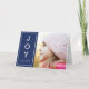 Send your friends and family "Warm Wishes" this Christmas/ Holiday season with this blue minimalist Holiday photo card that features the word "Joy" vertically.