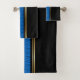 One side of these elegant towels is solid jet black and the other side is a sea of ripples, with a gold border stripe between! This distinctive towel set will add delightful colour and style to your bath decor! A great way to start your day in style!