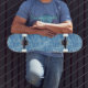 Skateboard with a modern blue water wave design. Leave it as is or add our own text by clicking the button to edit the template design.