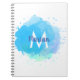 Monogram name notebook featuring a creative blue watercolor abstract splash. Designed by Thisisnotme©