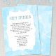 Cute invites with a splash of light blue color...the rhyme was adorable with fill-ins to make it more personal..placed matching confetti in the envelope to get the full effect of surprise... Very pretty with baby blue and lettering of white and grays...the font of the rhyme was very nice...on the back was a personal picture of the big sister ...liked the cloud looking border too! Perfect for s Sprinkle!