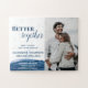 Modern, Blue, green, Airy, Contemporary custom wedding save the date puzzle. Announce your engagement and have your guests save your special wedding date with this modern and unique save the date jigsaw photo puzzle. Featuring blue watercolor brush strokes. Customise the photo, wedding date, location, bride and groom's names and wedding website (all text is fully customisable). “Better together” puzzle that your guests will enjoy putting together and cherish. Perfect words for a creative couple.