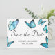 Blue watercolor butterflies save the date card. Beautiful trendy choice for summer weddings. Part of a wedding collection.