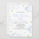 Celebrate the arrival of a new baby boy with this elegant and modern baby boy shower invitation. The white background is perfect for a baby shower, and the blue watercolor clouds and gold stars add a touch of luxury. This invitation is sure to be a hit with guests of all ages. Order your baby shower invitations today and celebrate the arrival of your new baby boy.