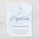 Blue Watercolor Cross in Calligraphy Baptism Invit Invitation