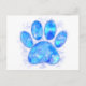 Blue Watercolor Dog Paw Print Postcard
