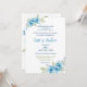 Whimsical blue watercolor floral accents and and visually pleasing fonts make for an elegant wedding invitation, evoking the "Something old, something new, something borrowed, and something blue" adage. Mostly formal in style, with more casual elements woven in, this design seamlessly blends vintage and modern aesthetics.