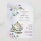 Blue watercolor floral tea party bridal shower invitation