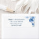 Blue watercolor floral wedding label with full names as an addition to the casual first names only wedding invitation.