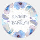 Blue Watercolor Flowers Boho Feathers Wedding Classic Round Sticker