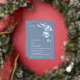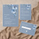 This elegant contemporary wedding invitation features watercolor painted 3D blue flowers and 3D text on a blue background.
