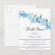 Blue Watercolor Flowers Elegant Bridal Shower Invitation Postcard