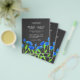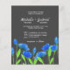 Blue modern watercolor wildflowers. Stylish wedding. Floral elegant black budget Invitation. Trendy choice for summer weddings.