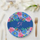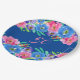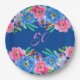 Blue Watercolor Flowers Happy 50th Birthday Paper Plate