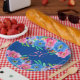 Happy Birthday paper plates some with watercolor flowers and some with other designs.