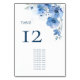 Blue Watercolor Flowers Seating Chart Table Number