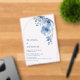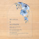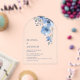 This elegant contemporary wedding invitation features watercolor painted blue flowers on a white background.