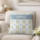 Blue Watercolor French Country Lemon Name Monogram Cushion