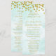 Custom wedding program in light turquoise blue watercolor pattern with gold confetti. Please note gold is photographic effect only.