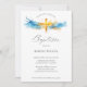 Blue Watercolor Gold Cross Boy Christening Baptism Invitation