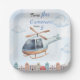 Blue Watercolor Helicopter City Paper Plate