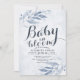 Blue Watercolor Leaves Baby Shower Baby in Bloom Invitation