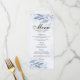 Wedding Menu Rack Cards Templates - Vintage Blue Watercolor Leaves and Handwritten Script on Watercolor Splash Background.