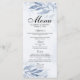 Blue Watercolor Leaves Botanical Chic Wedding Menu