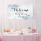 Blue Watercolor Leaves Floral Baby Shower Welcome Banner