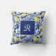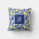 This Blue Tile French Country lemon monogram throw pillow blends sunny yellow lemons with rich blue leaves for a fresh Mediterranean look. Perfect for those who love personalized French country decor and timeless blue tile elegance.