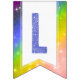 Personalise this colourful watercolor typography bunting banner with any word or phrase 16 letters or fewer. The rainbow background is eye-catching bright, and the blue watercolor galaxy / snow fall watercolor lettering gives it a hand-made vibe. Phrases that fit nicely with one space at beginning and end include "Happy Birthday," "Under the Seas," "Happy Hanukkah," and "Celebrate Love." "Merry Everything" and "Believe in Magic" are exactly 16 characters. For blanks / spaces, use ALT + 7 {numeric keypad} for a round dot / bullet.