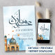 A beautiful watercolor illustration of a blue-domed mosque with floating golden stars. The airy, artistic style makes this a unique choice for your Eid Al-Fitr or Eid Al-Adha greetings.