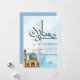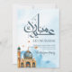 Blue Watercolor Mosque & Gold Stars Eid Mubarak Holiday Card