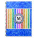 Blue Watercolor Rainbow Mosaic Stripe Monogram Notebook