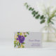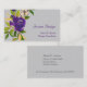 Simple, but stunning is this modern business card featuring a purple blue watercolor rose image set within a cluster of green leaves. The image is at the left front, with two text fields at the right. The image and text are placed on a light complementary grey background. The back of the card has the same grey background, with additional text fields and plenty of room to expand, if needed. The design on this card is appropriate for her for almost any profession or business. Feminine without being glitzy, this is a professional looking card. *This design uses artwork from CreateTheCut.com.